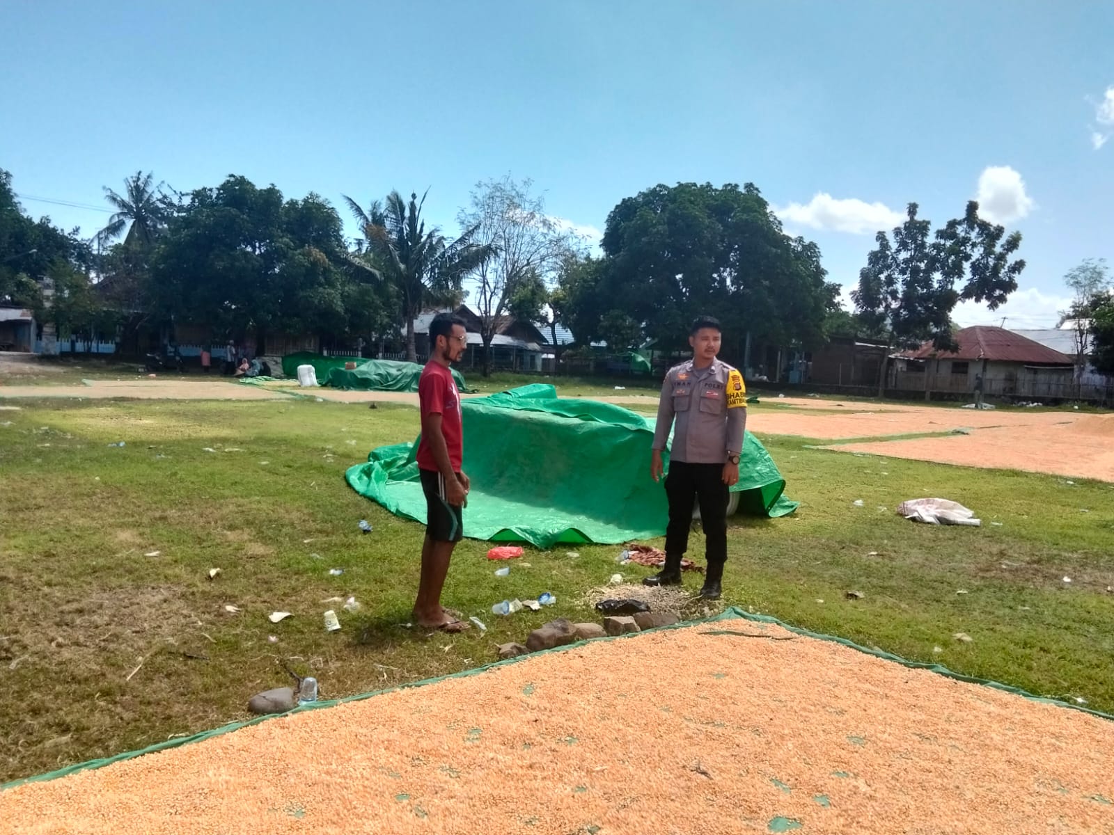 Bhabinkamtibmas Desa Sawe Polsek Hu’u, BRIPTU Imansyah, melaksanakan pemantauan terhadap warga binaan yang sedang menjemur jagung hasil panen di Dusun Lodo, Desa Sawe, Kecamatan Hu’u, Kabupaten Dompu, pada Minggu (18/5/2025) mulai pukul 12.30 Wita hingga selesai.