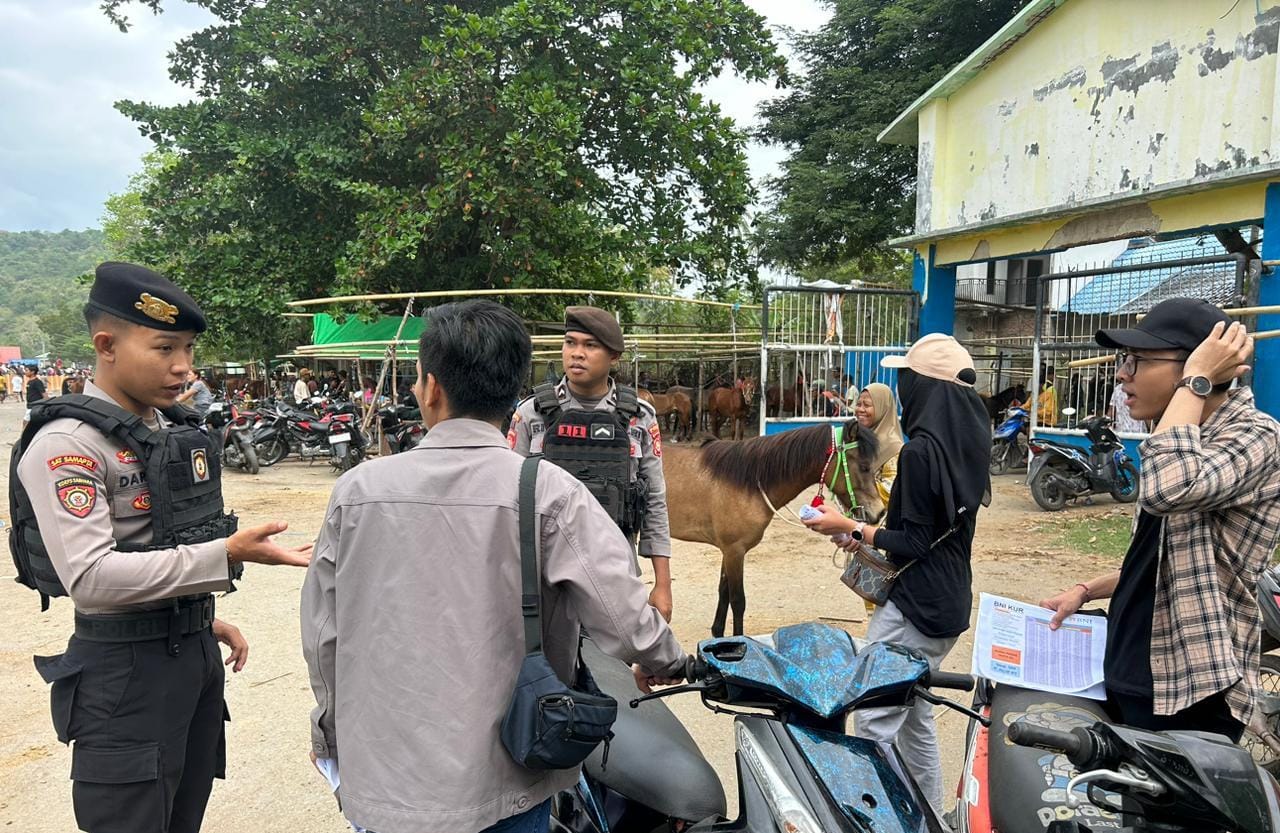 Anggota Unit Turjawali patmor regu l sat Samapta Polres Bima melaksanakan patroli di tempat keramaian seperti di arena pacuan kuda Desa Panda, Pertigaan Desa Talabiu hingga Desa Tangga Kecamatan Monta Kabupaten Bima.