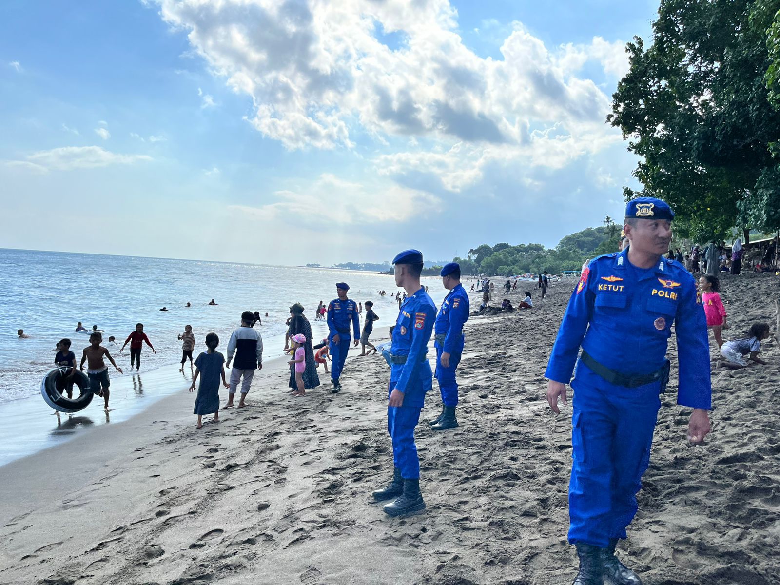 Patroli keamanan untuk masyarakat kawasan wisata pantai ini selain untuk memantau situasi juga melakukan dialogis dengan masyarakat pesir di wilayah hukum polda NTB.