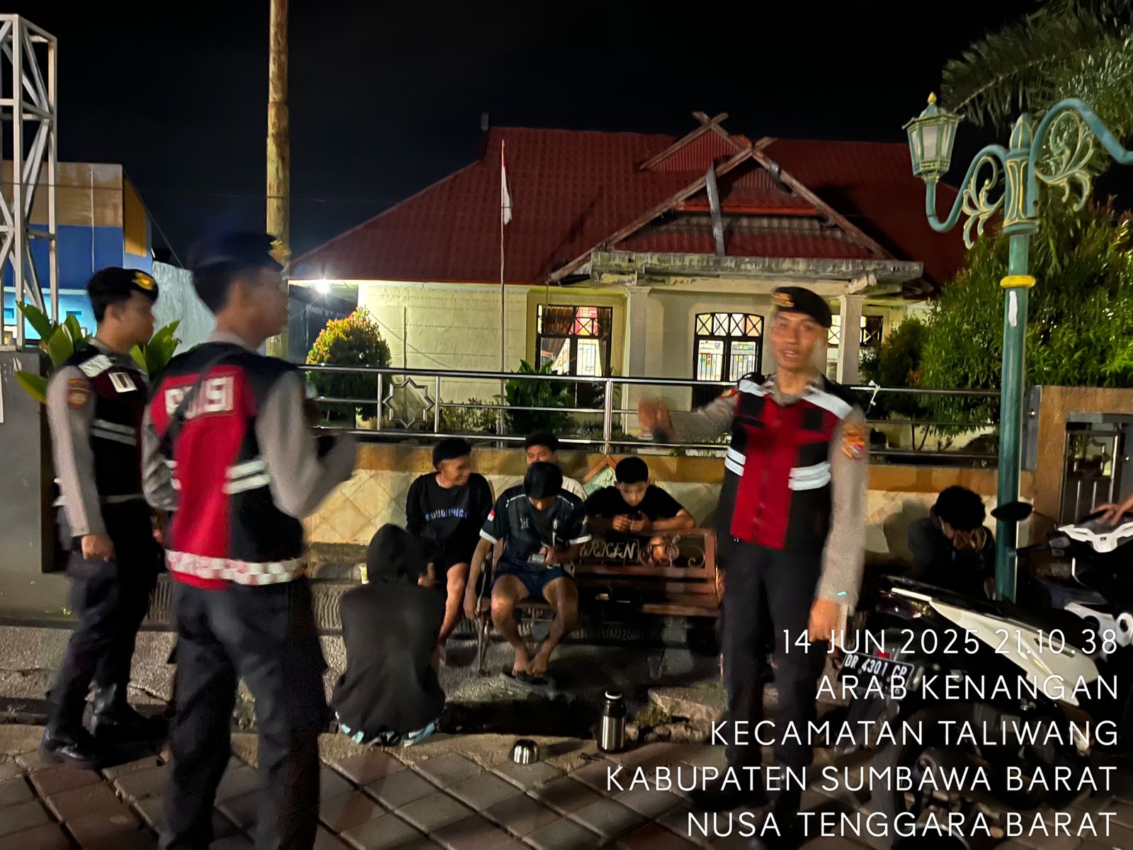 Sumbawa Barat, NTB — Dalam rangka menjaga situasi kamtibmas yang aman dan kondusif, Sat Samapta Polres Sumbawa Barat melaksanakan kegiatan Patroli Dialogis pada Sabtu malam, 14 Juni 2025, mulai pukul 21.00 WITA hingga 23.00 WITA. Patroli ini menyasar sejumlah titik keramaian di wilayah Kecamatan Taliwang, antara lain Komplek Taman Kemutar Telu Center (KTC), Alun-Alun Taliwang, dan permukiman warga di Kelurahan Arab Kenangan.
