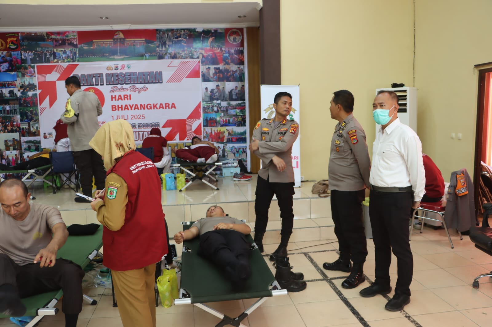 Lombok Utara – Dalam rangka menyambut Hari Bhayangkara ke-79, Polres Lombok Utara menggelar kegiatan bhakti kesehatan berupa donor darah yang berlangsung di Aula Sarja Arya Racana, Polres Lombok Utara, pada Senin (16/6).