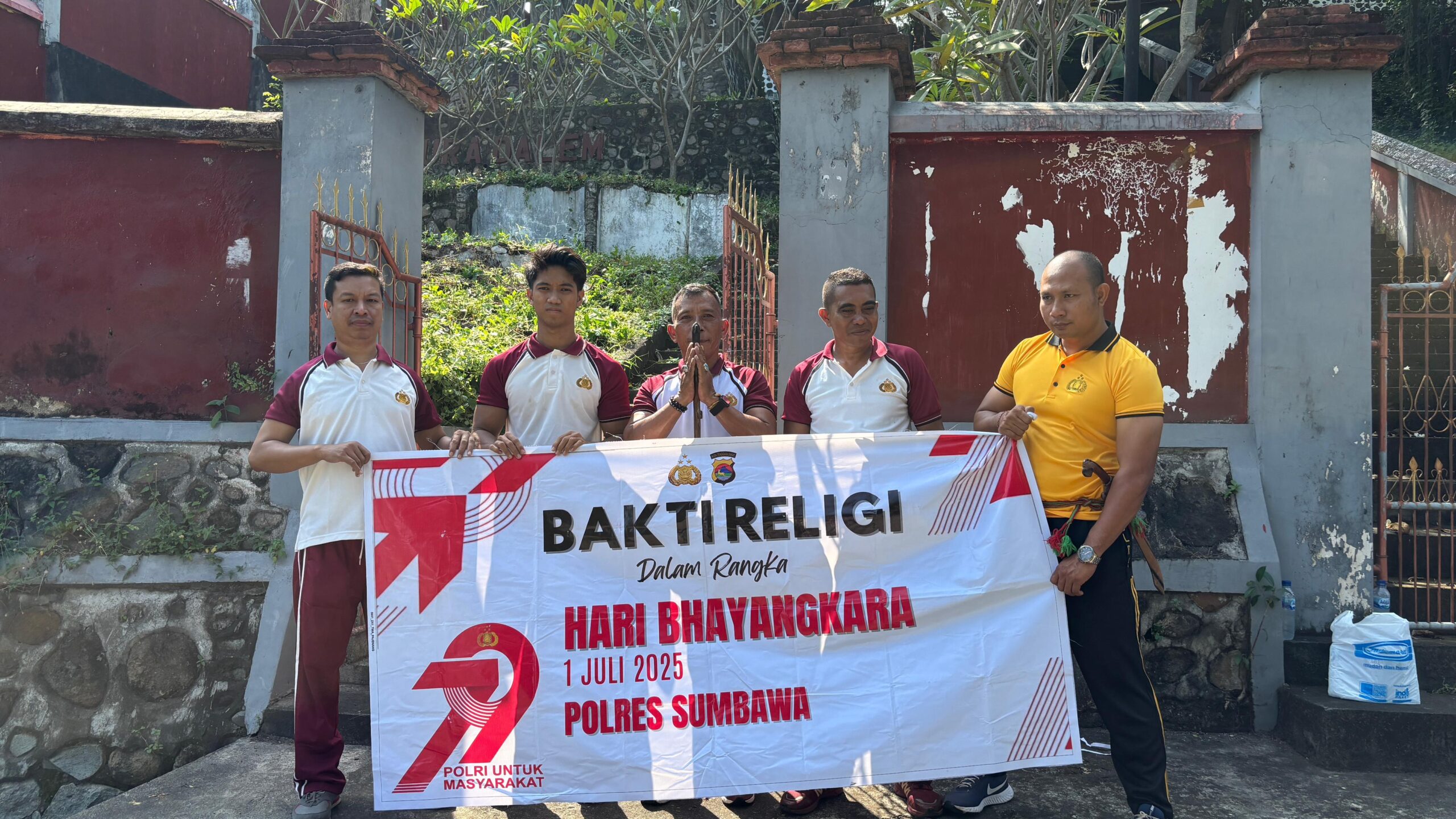 Kapolres Sumbawa AKBP Bagus Nyoman Gede Junaedi, S.H.,S.I.K.,M.A.P., melalui Kasi Humas Ipda Eva Sagala, mengungkapkan bahwa kegiatan Bhakti Religi ini merupakan salah satu rangkaian acara yang digelar Polres Sumbawa untuk memperingati Hari Bhayangkara.