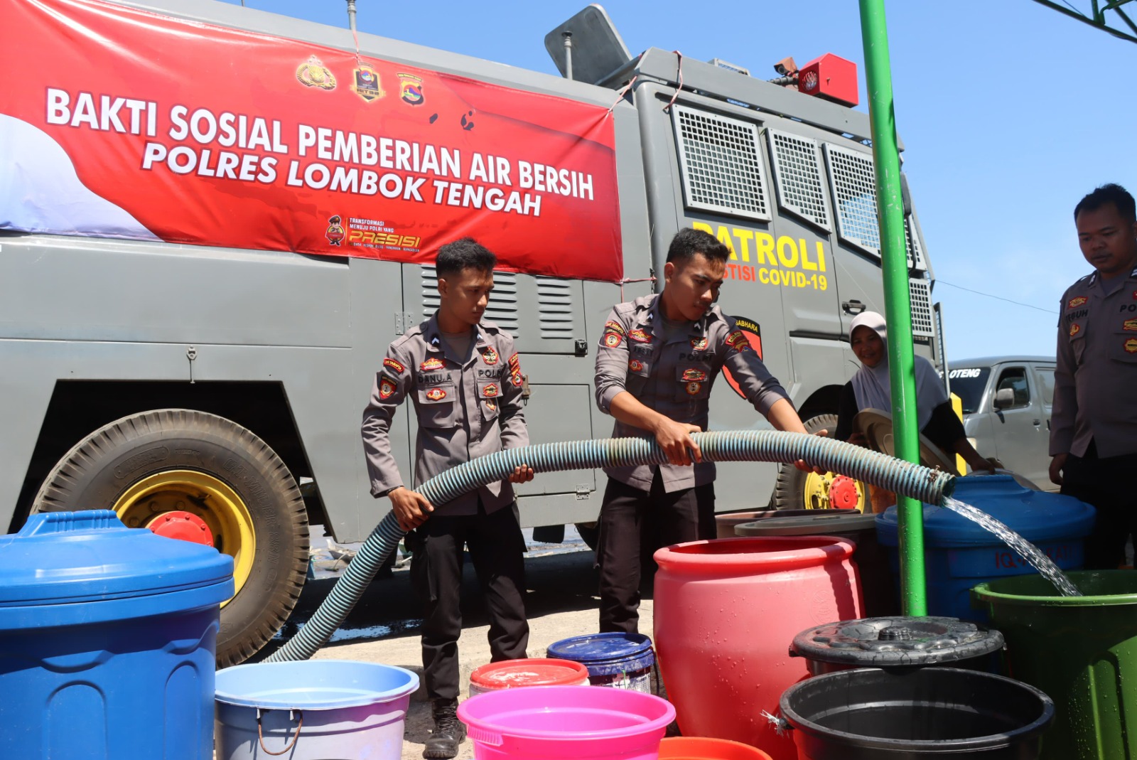 Brata mengungkapkan distribusi air bersih dilakukan dengan menggunakan dua unit kendaraan taktis milik Polres Lombok Tengah.