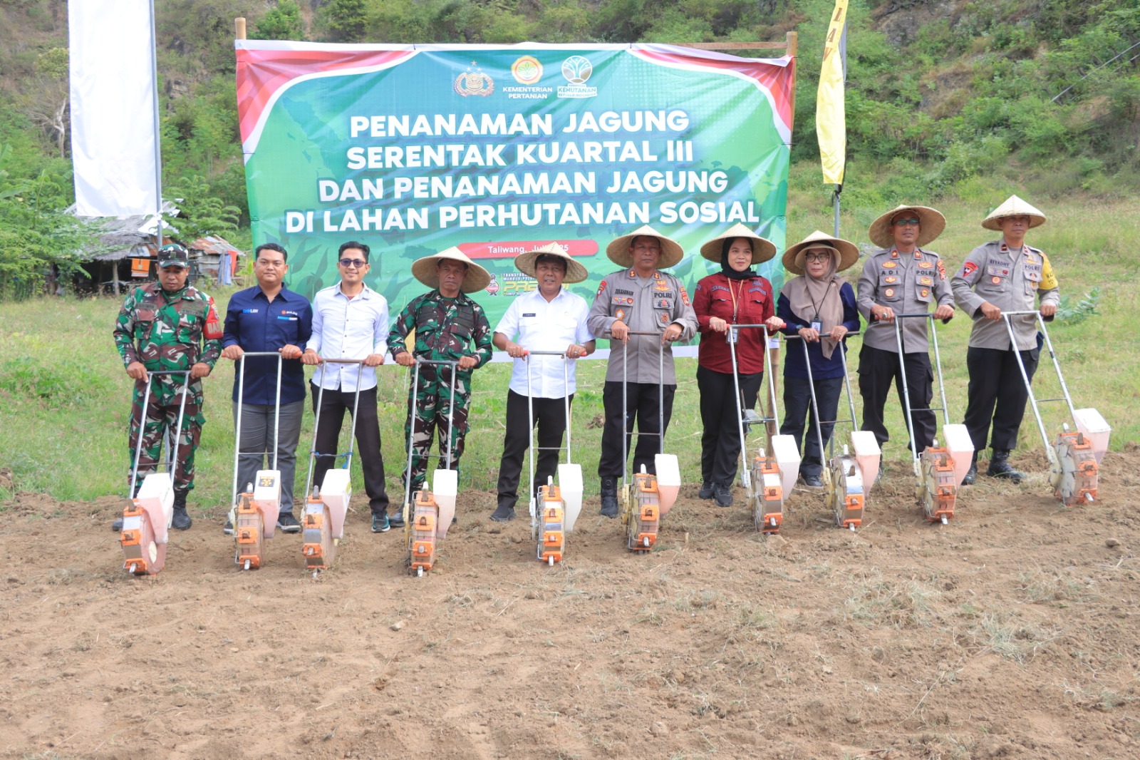 Sumbawa Barat NTB – Dalam rangka mendukung swasembada pangan nasional dan memperkuat ketahanan ekonomi daerah, Polres Sumbawa Barat bersama Pemerintah Kabupaten Sumbawa Barat melaksanakan kegiatan penanaman jagung serentak Kuartal III tahun 2025 dan penanaman pohon keras, pada Rabu (09/07/2025) sekitar pukul 14.00 Wita.