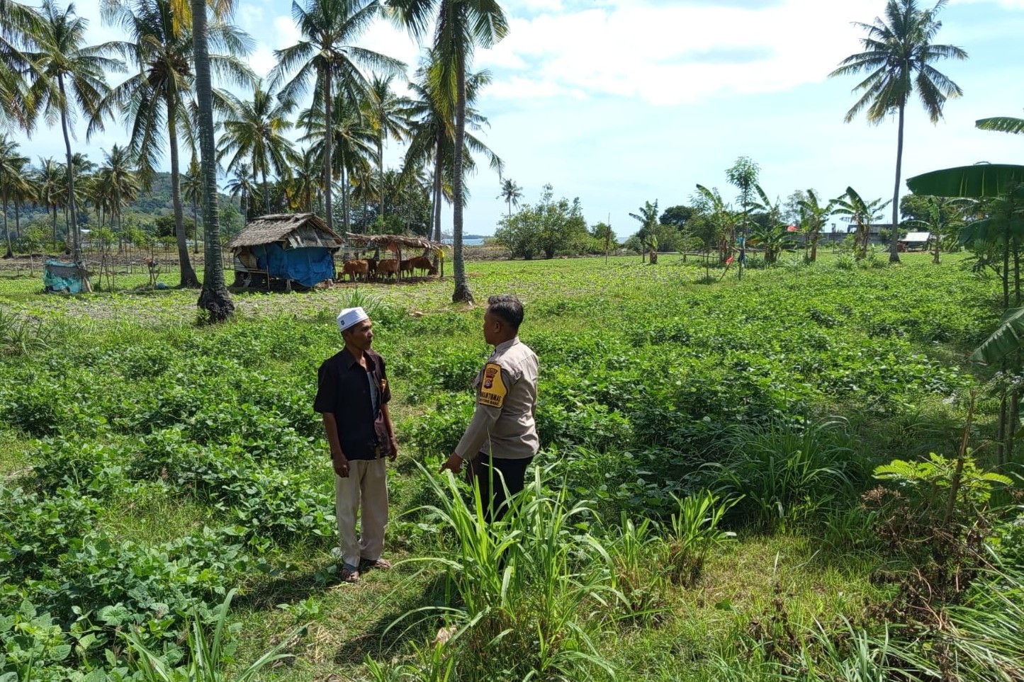 Pada Kamis, 17 Juli 2025, suasana pagi di Dusun Tembowong, Desa Persiapan Pesisir Mas, Kecamatan SekotongKabupaten Lombok Barat, tampak lebih semarak. Pukul 10.30 WITA, Bhabinkamtibmas Desa Sekotong Barat hadir langsung di lokasi penanaman sayur-sayuran dan palawija milik salah satu warga binaan, Bapak H. Suhaimi. Kegiatan ini bukan sekadar kunjungan rutin, melainkan wujud nyata dukungan Polri terhadap upaya peningkatan produksi pangan di tingkat lokal.