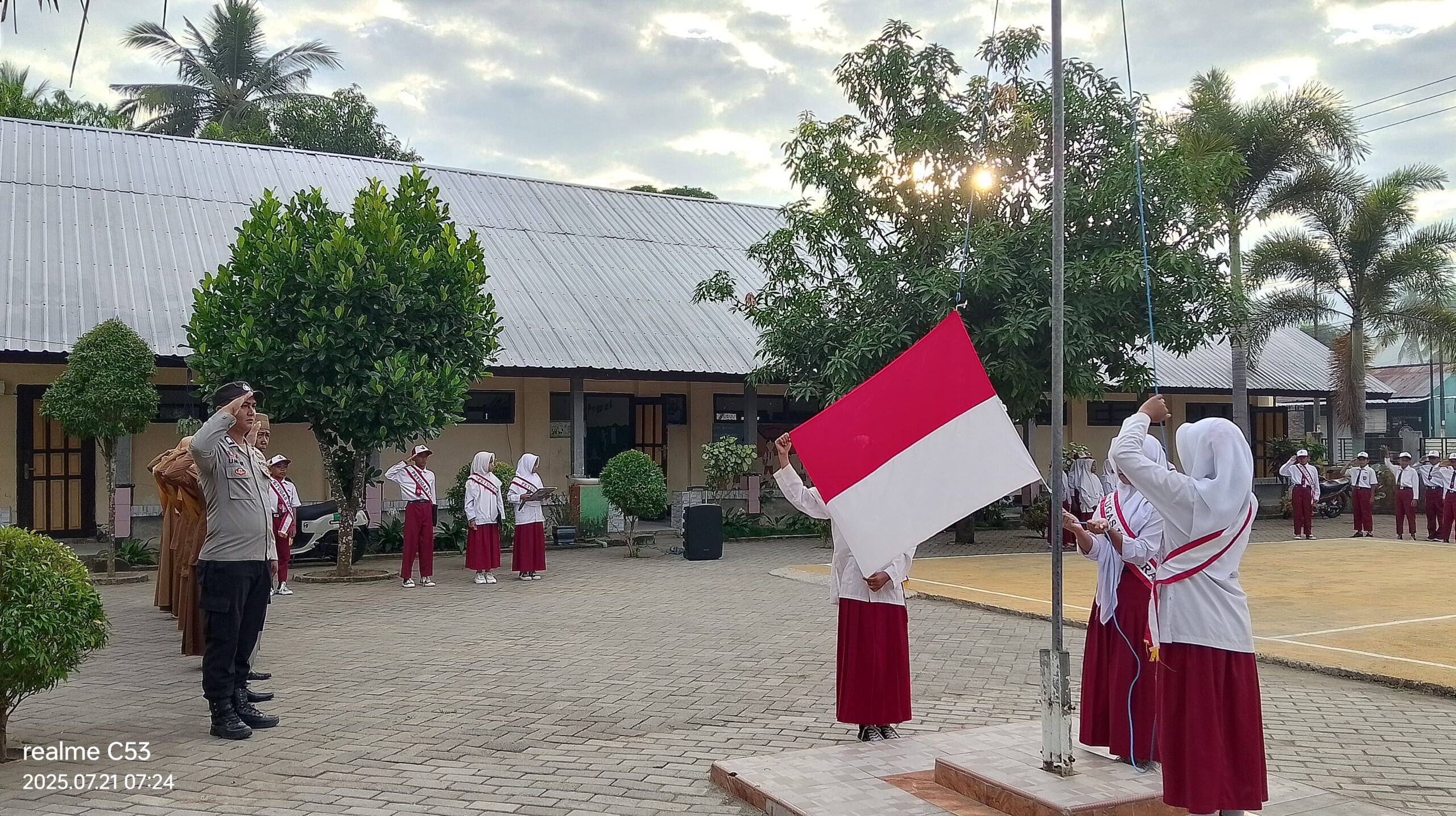 Usai upacara, seluruh murid secara bergiliran berjabat tangan dengan Kepala Sekolah, Bhabinkamtibmas, dan para guru sebagai bentuk penghormatan dan semangat kebersamaan. Dalam kesempatan tersebut, Brigadir Umar Dani menyampaikan pesan kepada para siswa agar senantiasa patuh dan hormat kepada guru, menjaga disiplin, serta tetap semangat dalam menuntut ilmu.