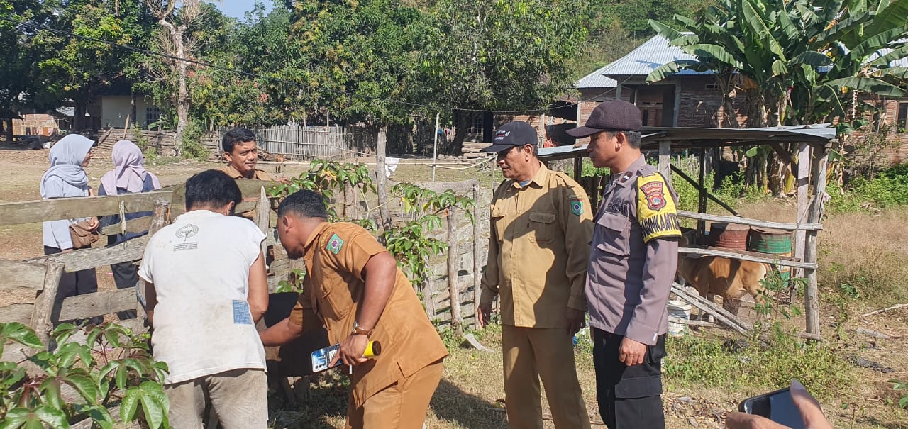 Bhabinkamtibmas Polres Bima Kota Dampingi Petugas Dinas Pertanian Laksanakan Vaksinasi Ternak di Kelurahan Jatibaru Timur