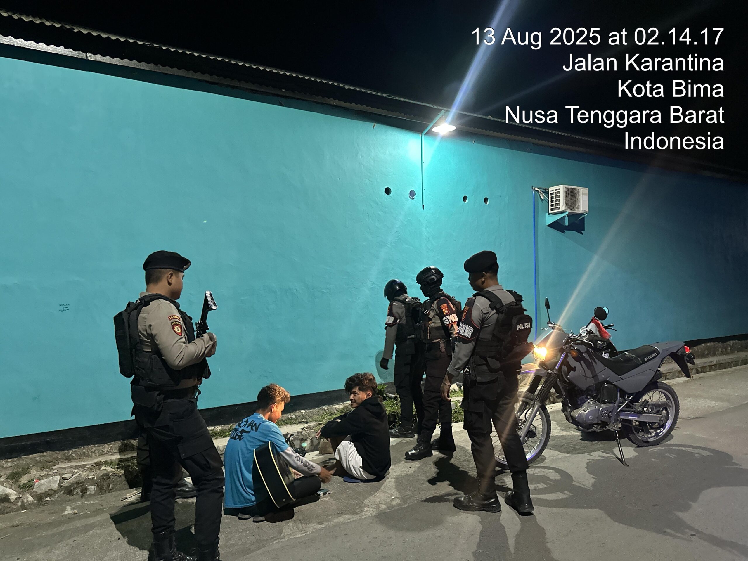 Kota Bima, NTB (13 Agustus 2025) – Sat Samapta Polres Bima Kota melaksanakan patroli malam guna mengantisipasi terjadinya tindak pidana 3C (curat, curas, dan curanmor) di wilayah hukumnya, Rabu (13/7/2025) pukul 02.00 WITA. Patroli menyasar dua titik lokasi, yakni wilayah Lewi Jambu dan BTN Tambana Kota Bima.