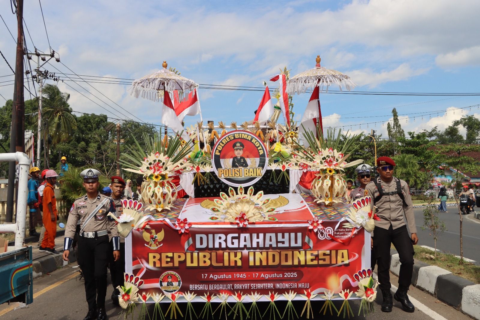 Polres Bima Kota Tampilkan Kendaraan Hias “Polisi Baik” di Karnaval HUT ke-80 RI