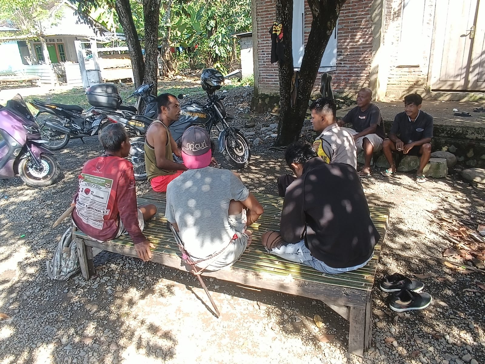 Sumbawa Barat – Bhabinkamtibmas Desa Kalimantong, Bripka Andy Ma’sum Kamil melaksanakan kegiatan sambang desa sekaligus sosialisasi terkait Tindak Pidana Perdagangan Orang (TPPO).