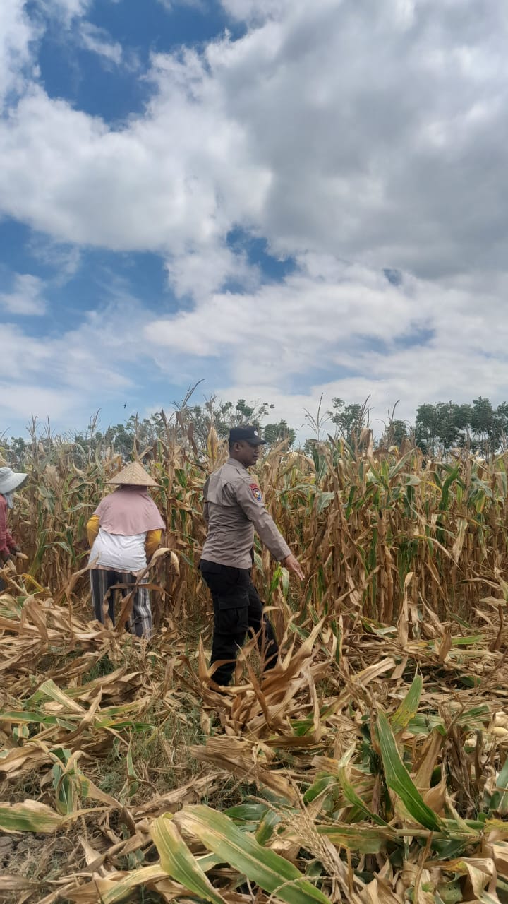 Selain memberikan motivasi dan semangat kepada petani, BRIPKA Adi juga berdialog langsung dengan pemilik lahan serta warga sekitar guna mendengar aspirasi dan kendala yang dihadapi para petani jagung di lapangan.