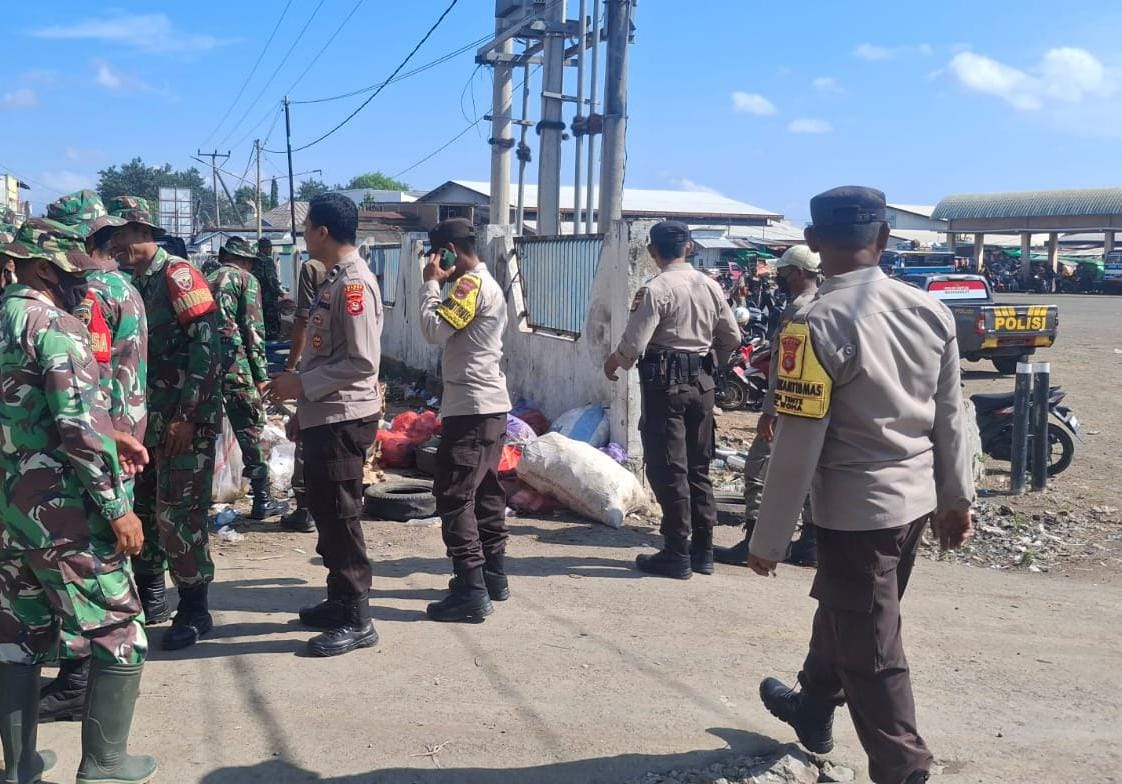 Bhakti Teritorial yang diimplementasikan dengan gotong royong gabungan membersihkan sampah mulai dari depan terminal, drainase hingga ke dalam pasar.Sampah sampah tersebut di kumpulkan lalu diangkut menggunakan mobil truk