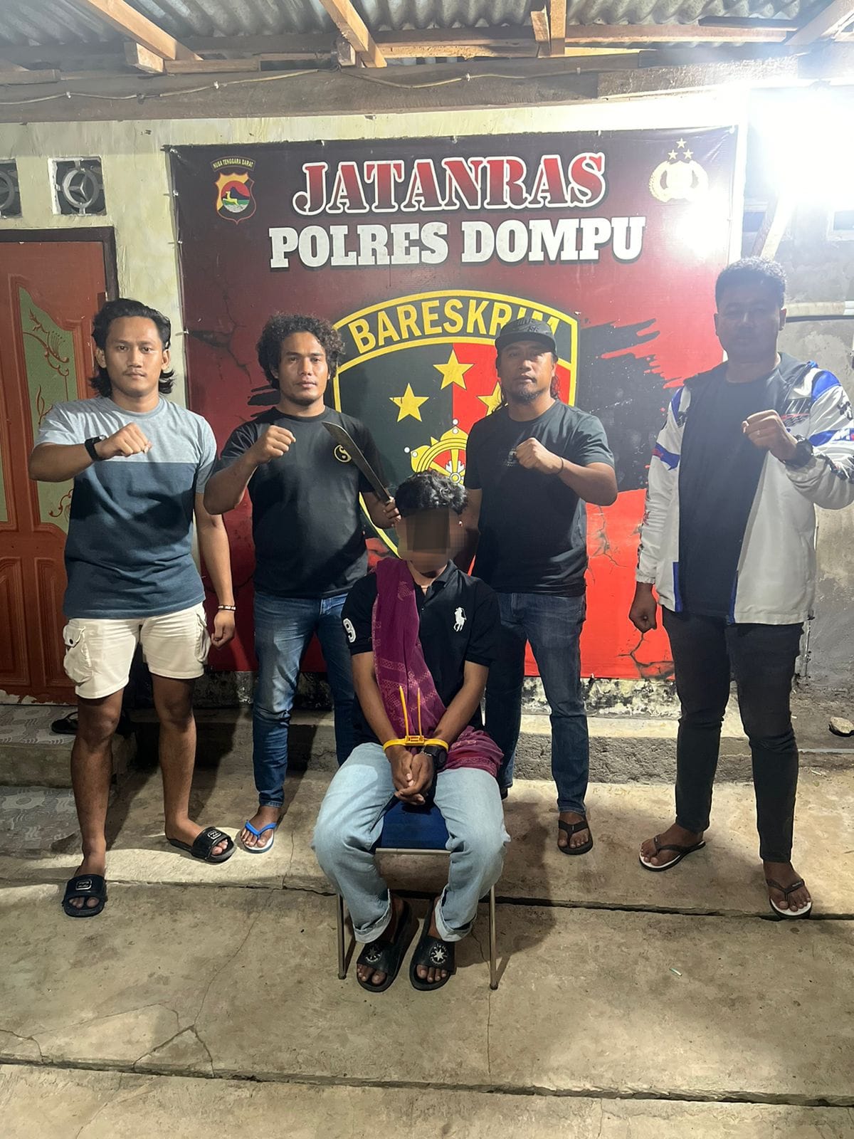 Pelaku yang diamankan berinisial ZK (19), warga Dusun Karama Bura, Desa Karama Bura, Kecamatan Dompu. Ia ditangkap tanpa perlawanan saat sedang duduk bersama teman-temannya di sekitar taman pendopo Kabupaten Dompu.