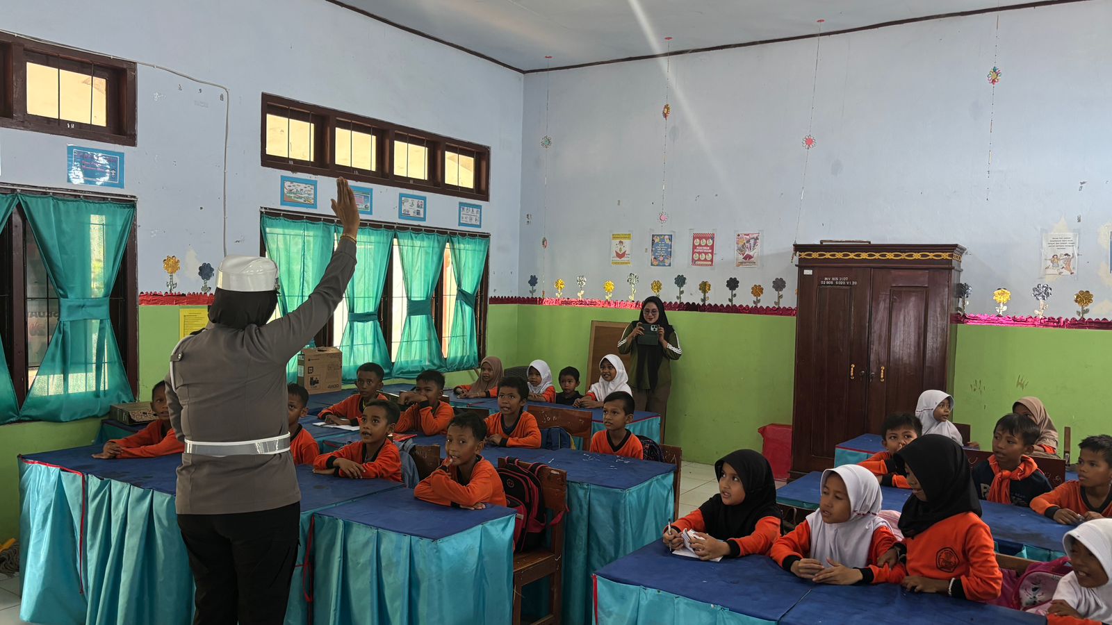 Kegiatan berjalan dengan penuh antusias dan keceriaan. Para siswa tampak aktif mengikuti setiap arahan dari petugas serta menunjukkan semangat tinggi dalam belajar tentang keselamatan di jalan.