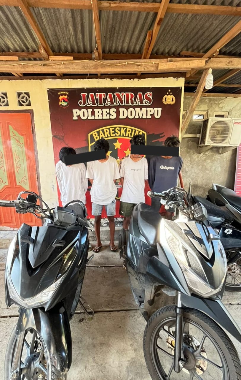 Seluruh terduga pelaku beserta barang bukti berupa tiga unit sepeda motor kini telah diamankan di Mako Polres Dompu untuk menjalani proses hukum sesuai ketentuan yang berlaku.