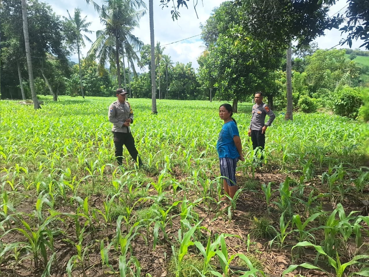 Dalam kegiatan yang dimulai pukul 10.30 WITA tersebut, Ps. Kasi Um Polsek Rhee sekaligus Pendamping Poktan Kecamatan Rhee, Aipda Syamsul Bahri, bersama Bhabinkamtibmas Desa Luk, Brigadir I Komang Widnyana, mengunjungi lahan milik Sdr. I Made Sumendra dan Ibu Ni Kadek Arniti.