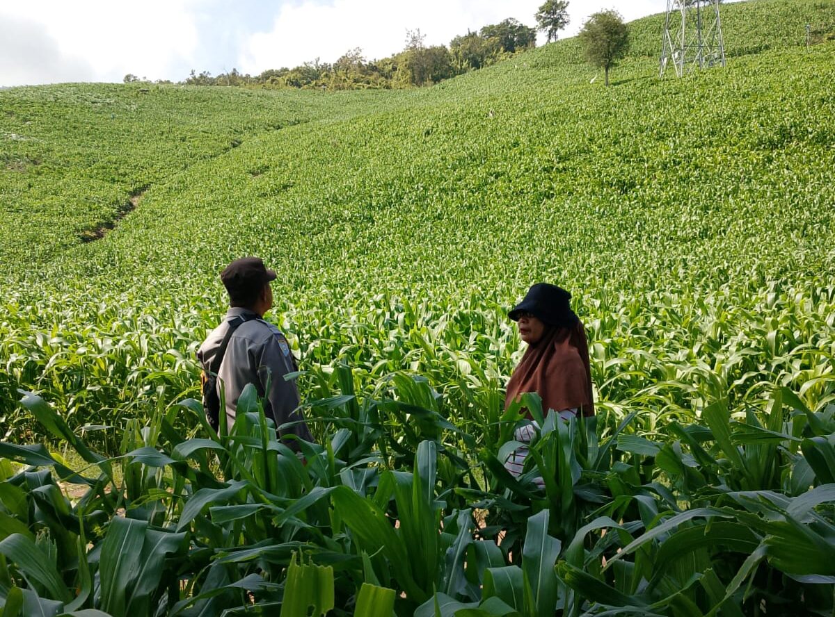 Pemantauan dilakukan oleh Bhabinkamtibmas Desa Kwangko Polsek Manggelewa, Bripka Sahrir Ramadhan, dengan menyambangi lahan jagung milik warga binaannya.