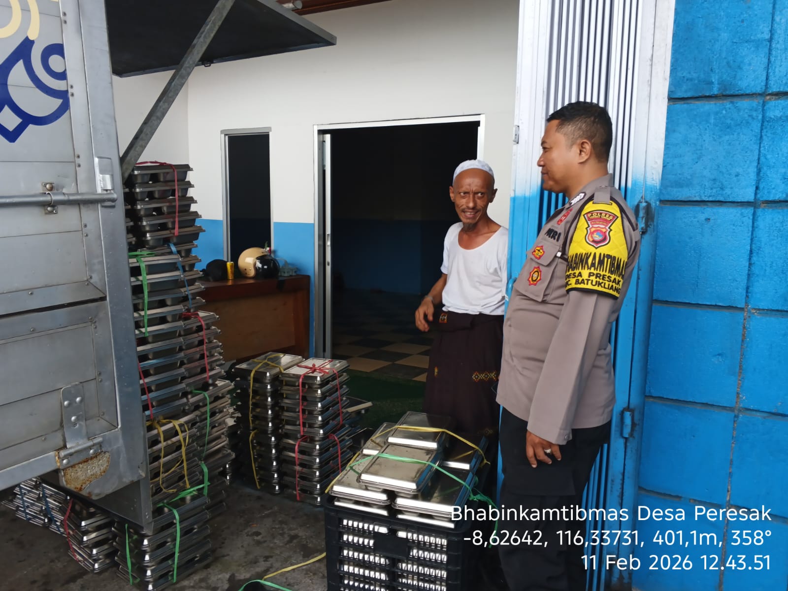 Lombok Tengah – Guna memastikan pendistribusian berjalan lancar dan tepat sasaran, Bhabinkamtibmas Desa Peresak Polsek Batukliang Polres Lombok Tengah, BRIPKA Muammar Khadafi, melaksanakan kunjungan dan koordinasi langsung ke SPPG Boak, Desa Peresak, pada Rabu, 11 Februari 2026 pukul 12.45 WITA hingga selesai.