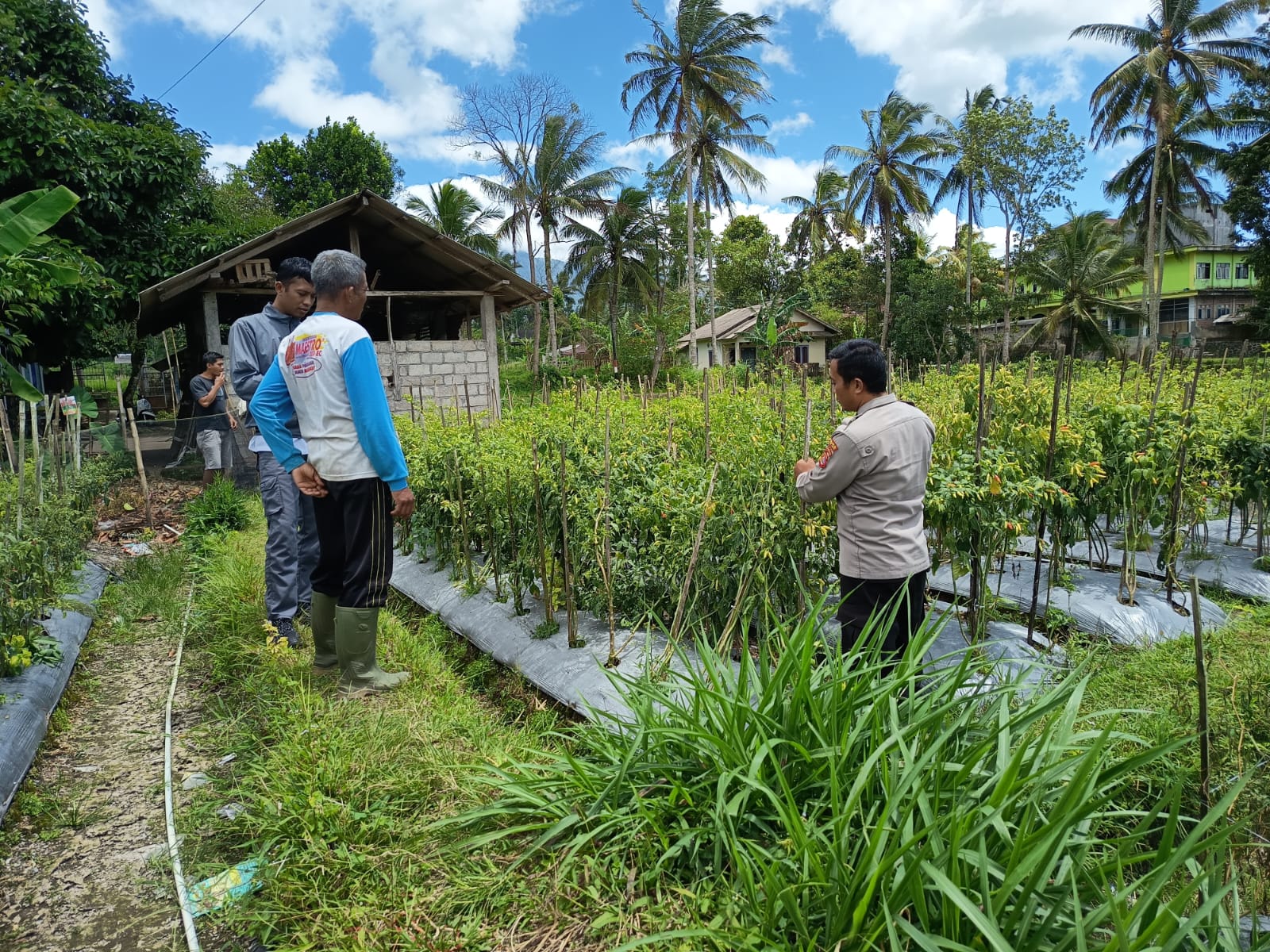 Adapun silaturahmi dilakukan dengan mengunjungi langsung lahan pertanian yang saat ini ditanami tanaman cabai. Pada kesempatan tersebut, Aiptu Rahmat Dwi Satrio memberikan himbauan kepada Ketua Kelompok Tani agar terus mengembangkan usaha pertaniannya, khususnya pada komoditas jagung, cabai, dan padi.