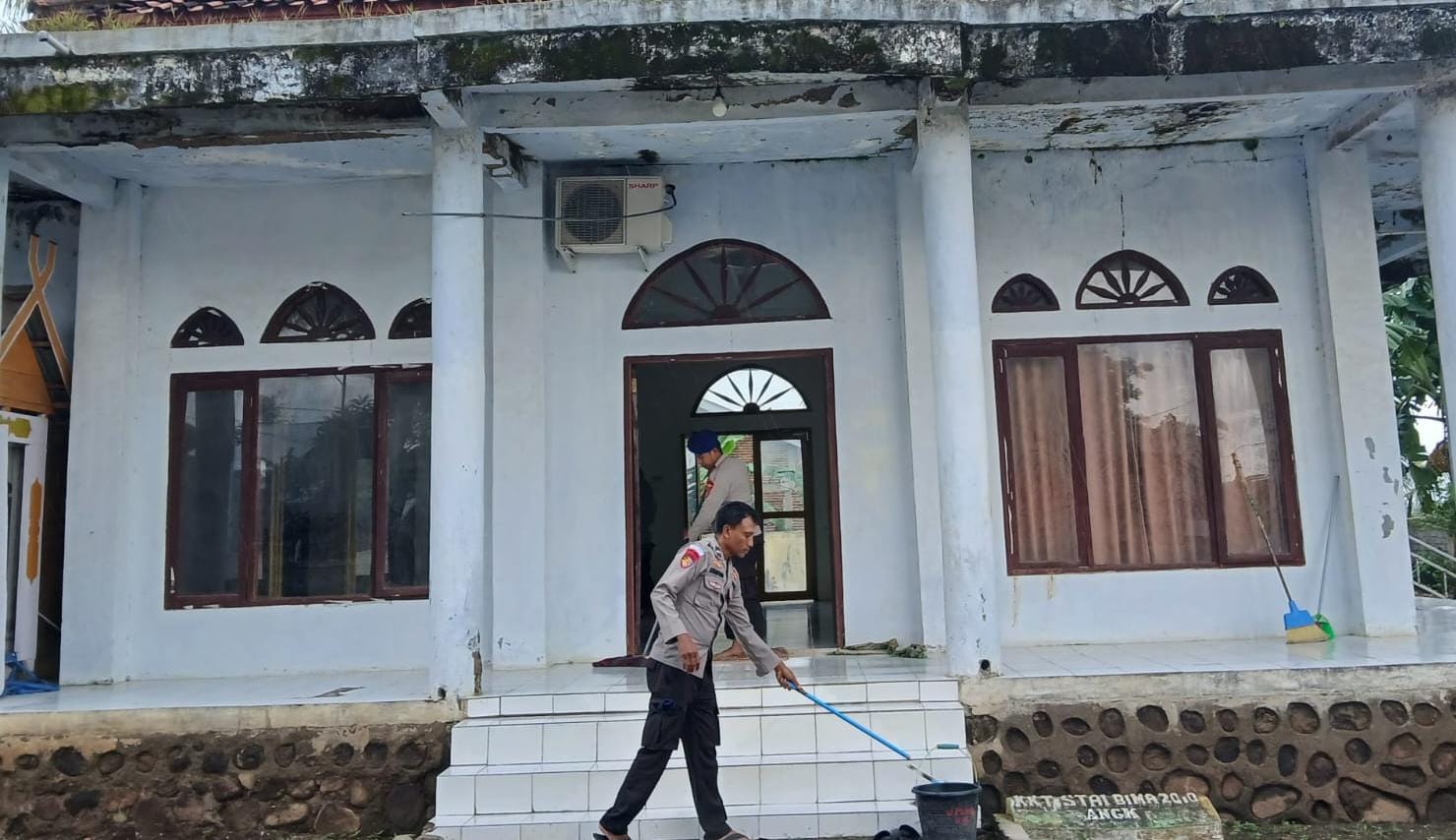 Satuan Polisi Perairan dan Udara (Sat Polairud) Polres Bima Kabupaten Polda NTB melakukan kegiatan Sambang Religi dengan membersihkan Masjid di Desa Bajo.