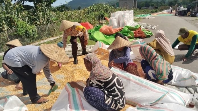 Dalam rangka mendukung Program Ketahanan Pangan Nasional menuju Indonesia Emas 2045, Bhabinkamtibmas Desa Mumbu Polsek Woja melaksanakan kegiatan pemantauan lahan jagung milik warga binaan di Dusun Madamina, Desa Mumbu, Kecamatan Woja, Kabupaten Dompu, Senin (23/03/2026) sekitar pukul 12.00 Wita.