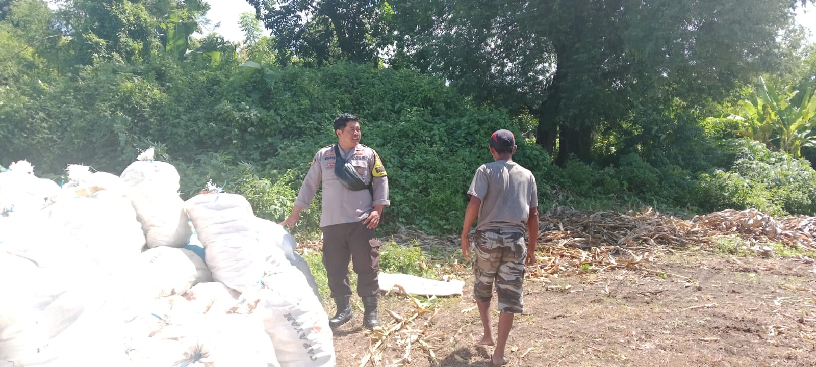 Dalam rangka mendukung Program Ketahanan Pangan Nasional menuju Indonesia Emas 2045, Bhabinkamtibmas Desa Pekat, Polsek Pekat, Brigadir Syamsuri Akhmadi, melaksanakan kegiatan pemantauan panen dan penjemuran jagung milik warga di wilayah binaannya.