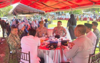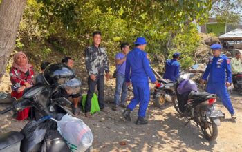 LOMBOK TIMUR — Bhabinkamtibmas Desa Lando Polsek Terara Aipda Lalu Wilham Saufi bersama Bhabinkamtibmas Desa Jenggik Bripka Agus W. melaksanakan pengamanan dan pengawalan kegiatan adat nyongkolan di Dusun Lendang Belo, Desa Lando, Kecamatan Terara, Kabupaten Lombok Timur. Rabu (8/4/2026).