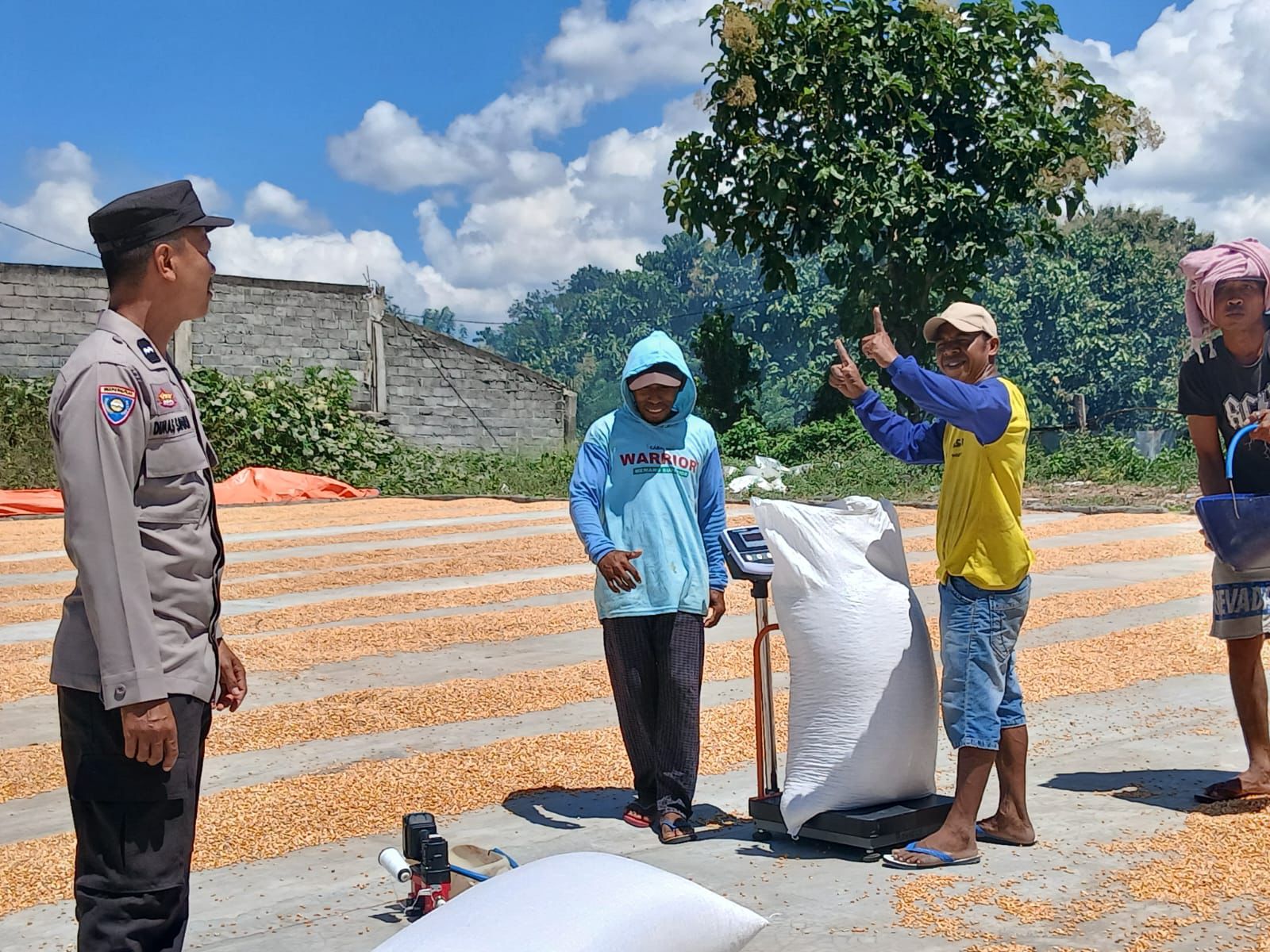 Kegiatan dilakukan terhadap jagung milik Arif (35) dengan luas lahan 2 hektar, varietas hibrida ADV Jago, yang telah memasuki masa panen pada usia 115 hari, dengan estimasi hasil panen sekitar 14 ton. Jagung yang telah dijemur dan dikemas dipantau untuk memastikan proses pascapanen berjalan dengan baik.